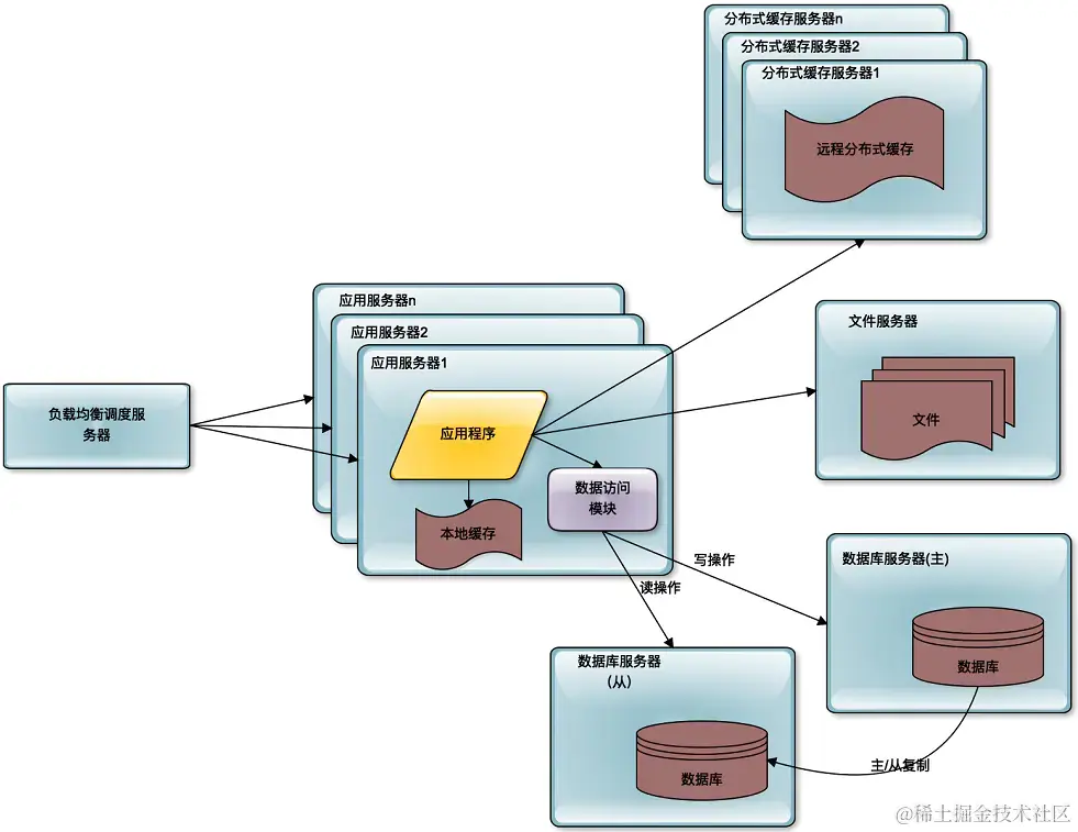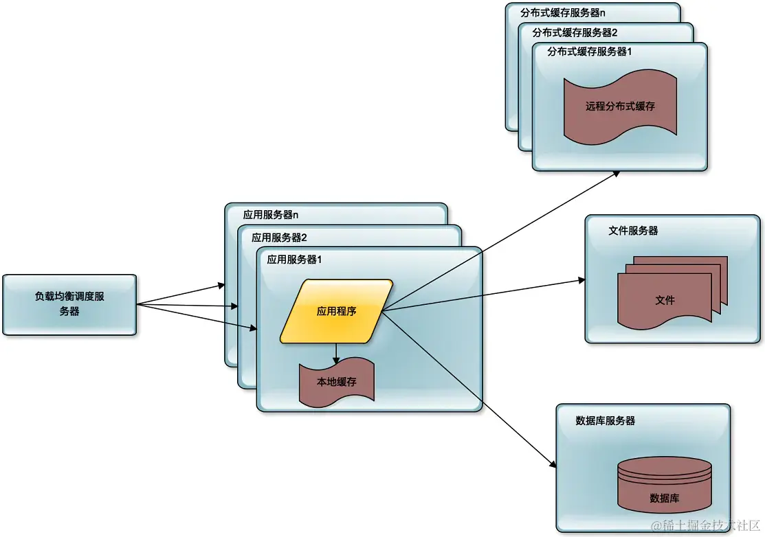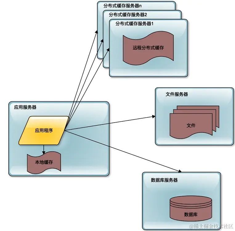 所谓缓存,就是将应用程序需要读取的数据缓存在缓存中,通过缓存读取数据,而不是通过数据库读取数据。缓存主要有分布式缓存和本地缓存两种。分布式缓存将多台服务器共同构成一个集群,存储更多的缓存数据,共同对应用程序提供缓存服务,提供更强大的缓存能力。