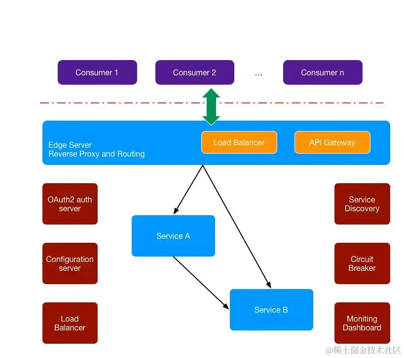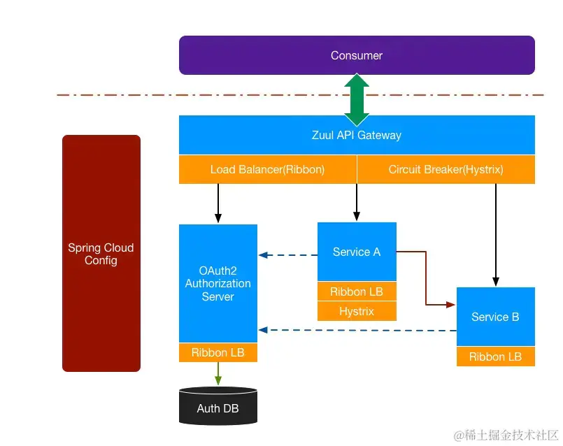 - Zuul - Zuul 是在云平台上提供动态路由,监控,弹性,安全等边缘服务的框架。Zuul 相当于是设备和 Netflix 流应用的 Web 网站后端所有请求的前门。
