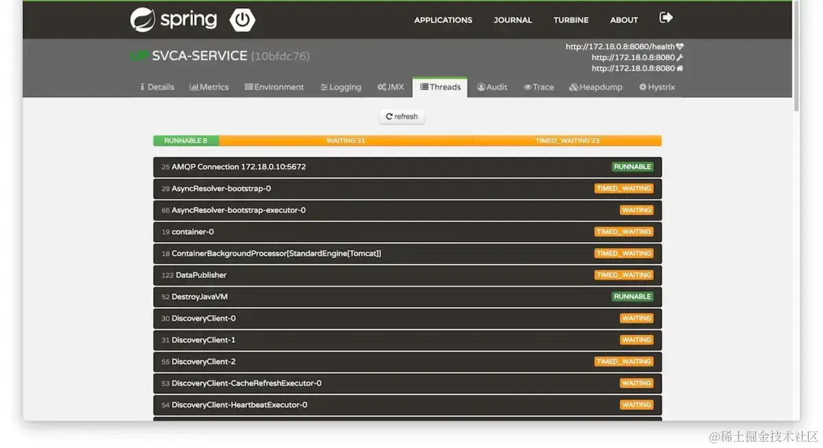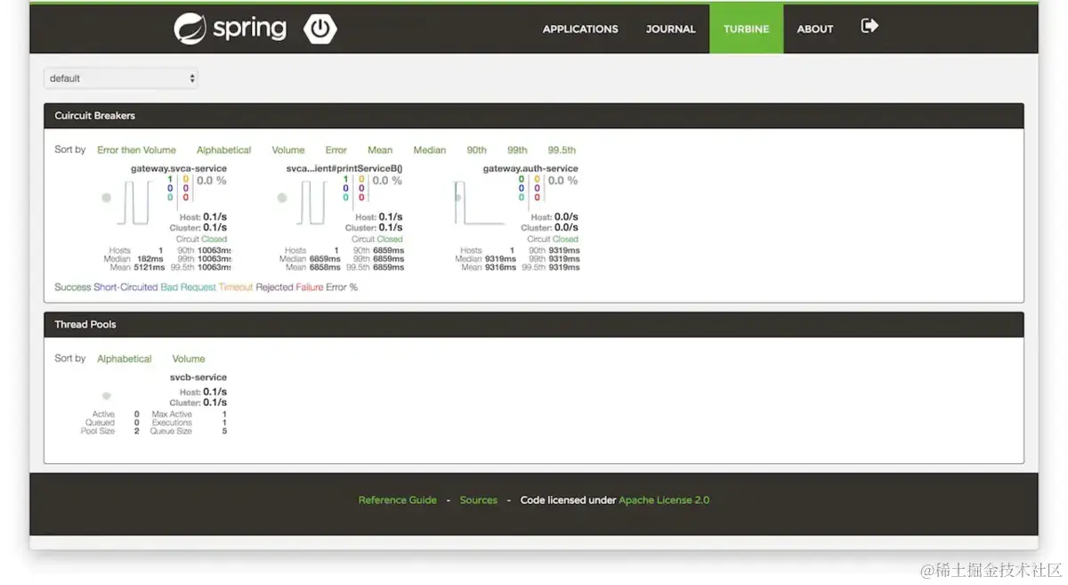 - Turbine - Turbine 是聚合服务器发送事件流数据的一个工具,用来监控集群下 hystrix 的 metrics 情况。