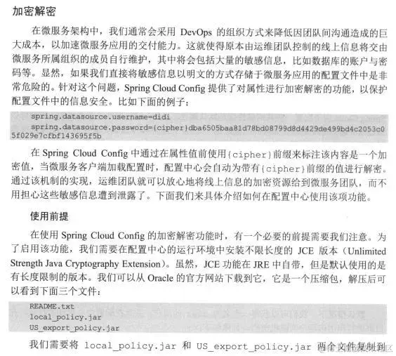 分布式配置中心: 快速入门、构建配置中心、配置规则详解、客户端配置映射、服务端详解、基础架构、Git配置仓库、SVN配置仓库、本地仓库、本地文件系统、健康监测、属性覆盖、安全保护、加密解密、高可用配置、客户端详解、服务化配置中心、失败快速响应与重试、获取远程配置、动态刷新配置。