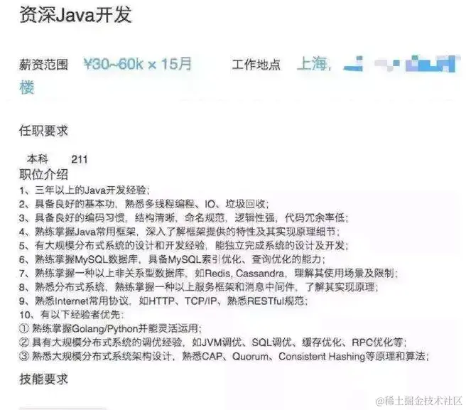 2、聚焦到具体的技能上,企业对资深程序员的期望是什么呢?几乎所有的招聘要求都会提到:熟悉分布式系统、有分布式系统开发经验的优先。