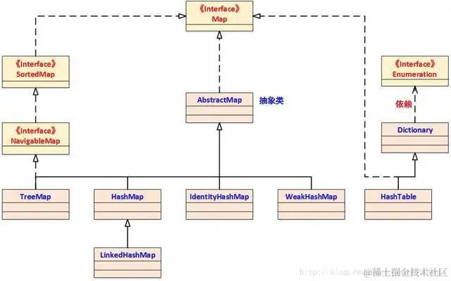 Map 是 Key-Value 对映射的抽象接口,该映射不包括重复的键,即一个键对应一个值。HashMap 是 Java Collection Framework 的重要成员,也是Map族(如下图所示)中我们最为常用的一种。简单地说,HashMap 是基于哈希表的 Map 接口的实现,以 Key-Value 的形式存在,即存储的对象是 Entry (同时包含了 Key 和 Value) 。在HashMap中,其会根据hash算法来计算key-value的存储位置并进行快速存取。特别地,HashMap最多只允许一条Entry的键为Null(多条会覆盖),但允许多条Entry的值为Null。此外,HashMap 是 Map 的一个非同步的实现。