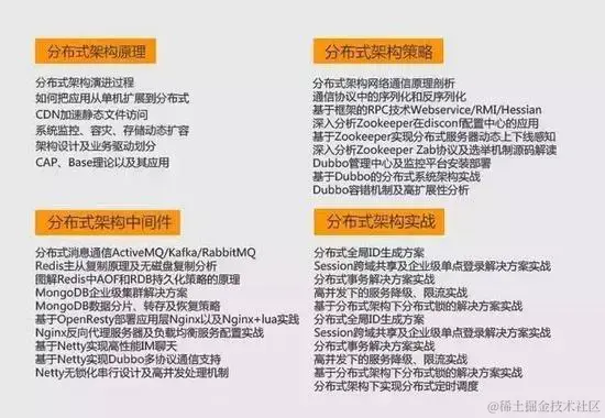 阿里巴巴有很多大团队,这种大团队里有很多小团队,到小团队之后,做的业务都不相同,如果想立足成为一线互联网公司中的万能选手,最主流的分布式架构中有很多知识都是必须要去了解与学习的。并且在阿里面试过程中,面试官会问到实际应用场景的问题:比如微服务化、用户量、并发量、业务复杂度以及可扩展程度等,这里不多赘述。本屌提供一个分布式架构的学习思路也是自己目前还在学习中的体系: