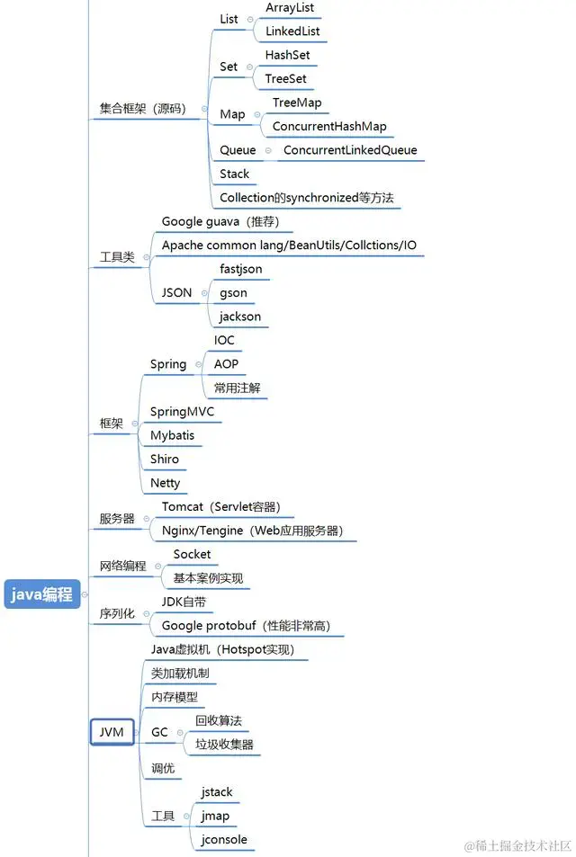 包括:集合框架(源码)、工具类、框架Spring、SpringMVC、Mybatis、Shiro、Netty、服务器(tomcat、Nginx)、网络编程、序列化、JVM等。