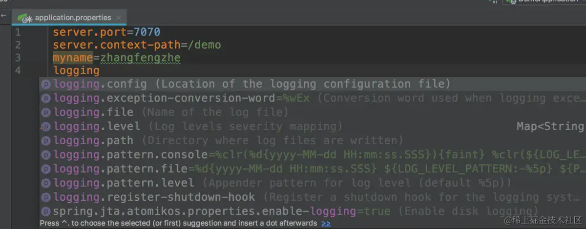 在application.properties中进行日志配置
