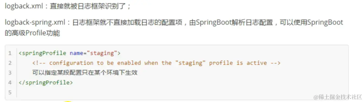 下面我们再来简单谈一下日志的profile功能,要想支持profile功能也很简单,比如不要在叫logback.xml,而是logback-spring.xml,这样日志配置将由springboot来进行处理,就可以使用到profile功能。