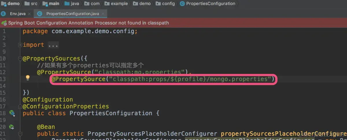 在上文中,我们已经System.setProperty进行设置,将当前环境信息设置到profile变量中,因此我们直接进行${profile}引用了。