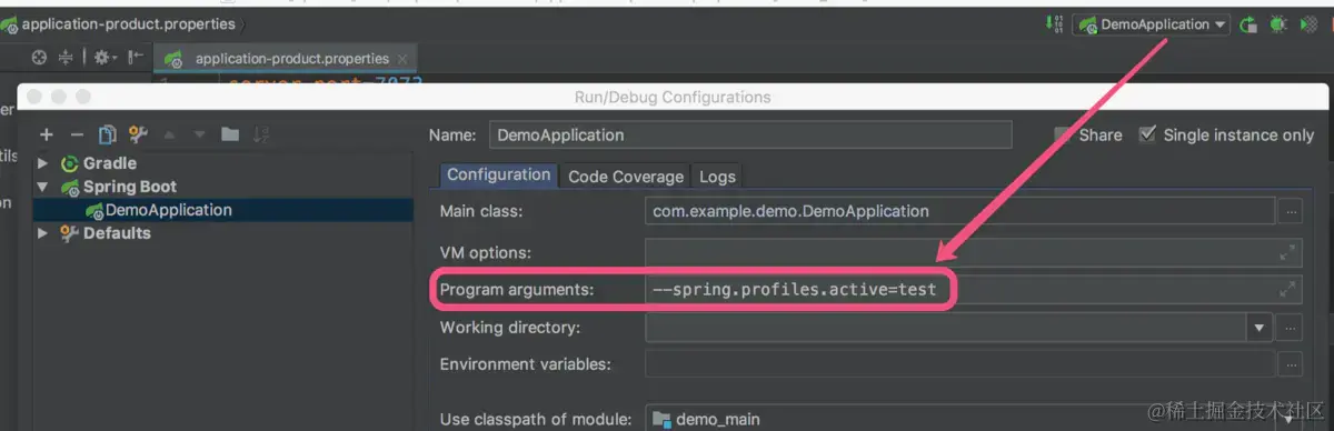 通过这个--spring.profiles.active=test就是在告诉springboot,我们设置的profile是test。