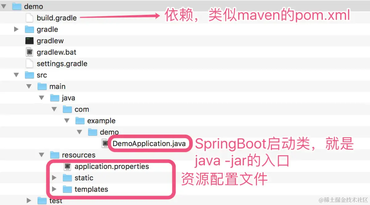 直接运行DemoApplication中的main方法就可以启动springboot应用了。