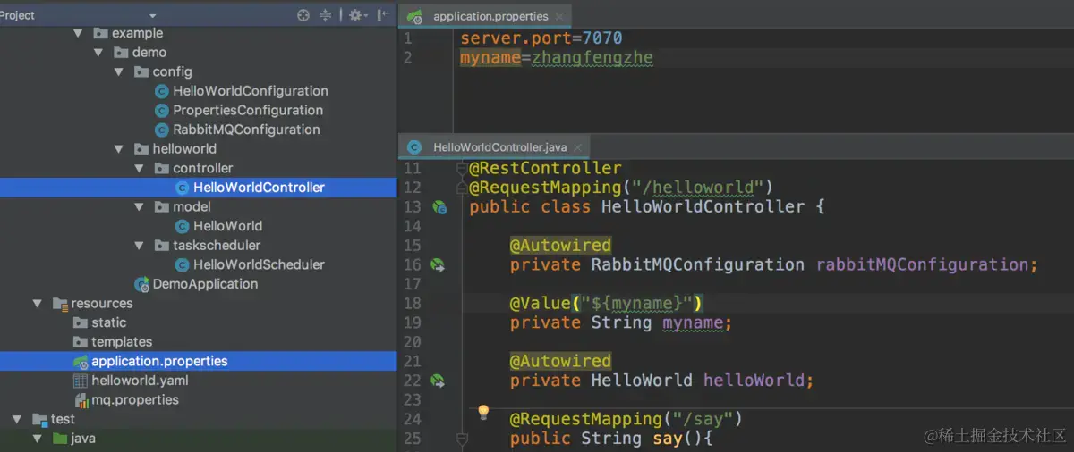 springboot默认会自动加载resource下application.properties/application.yml文件,其中的属性,可以通过${xxx}的方式进行引用。