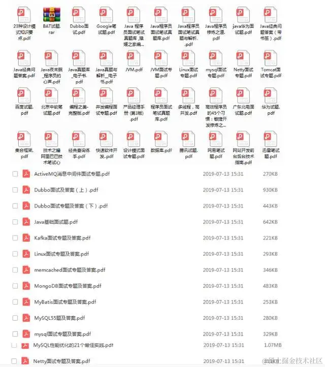 除了算法部分以外,要想在实际面试中做到心中有数,大厂的常问的一些面试题或知识点也很有必要看一看。我特意搜集整理了近3年来一线互联网公司的面试题(技术部分) ,会发现这些面试题实际问的大同小异,但考察你的内容和技术都是有不同的目的性的,对这一部分的分析,我也有写在答案里(详细见文档)。