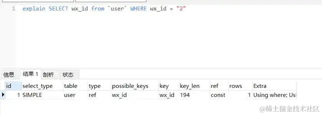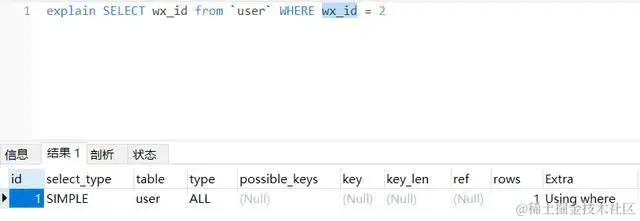 这条 SQL 语句中,wx_id 是具有索引的,但是王经理查出来的结果却是这样的