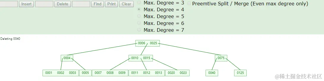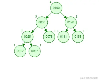 - 除根节点外的每个节点至少包含2个子节点,最多包含4个子节点(m = 4, min_sub_num = m/2 = 2)