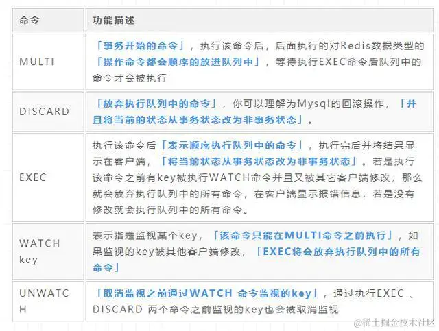 在Redis中事务的实现主要是通过如下的命令实现的: