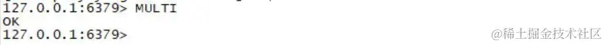 MULTI 命令表示事务的开始,当看到OK表示已经进入事务的状态: