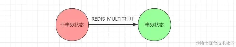 该命令执行后客户端会将**「当前的状态从非事务状态修改为事务状态」**,这一状态的切换是将客户端的flags属性中打开REDIS_MULTI来完成的,该命令可以理解关系型数据库Mysql的BEGIN TRANCATION语句: