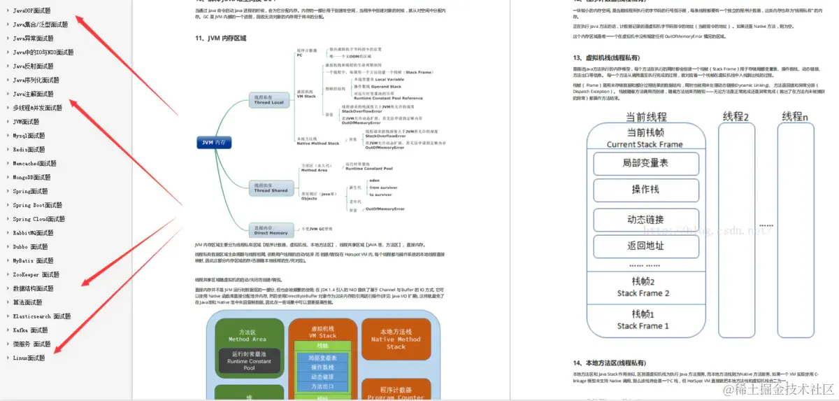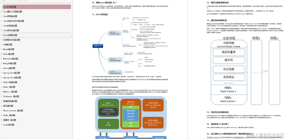 该文档在Github上收获40K+star的Java面试神技(这赞数,质量多高就不用我多说了吧)非常全面,包涵Java基础、Java集合、JavaWeb、Java异常、OOP、IO与NIO、反射、注解、多线程、JVM、MySQL、MongoDB、Spring全家桶、计算机网络、分布式架构、Redis、Linux、git、前端、算法与数据结构、MyBatis、RocketMQ、Netty、Dubbo。内容非常丰富,已经帮很多人拿下互联网一线公司的offer。
