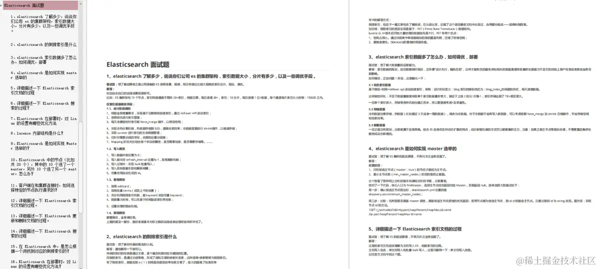 - Elasticsearch 了解多少,说说你们公司 es 的集群架构,索引数据大小,分片有多少,以及一些调优手段 。