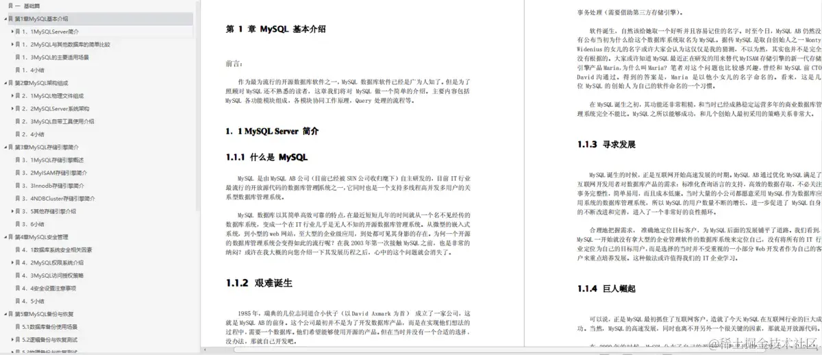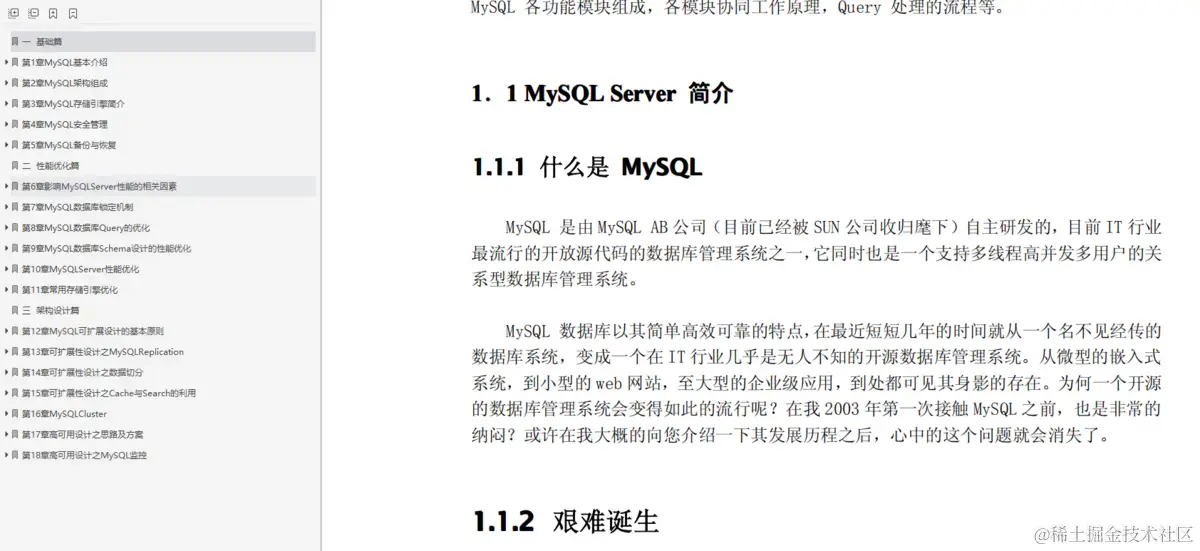 手册共分为三大部分:MySQL基础+MySQL性能优化+MySQL架构设计