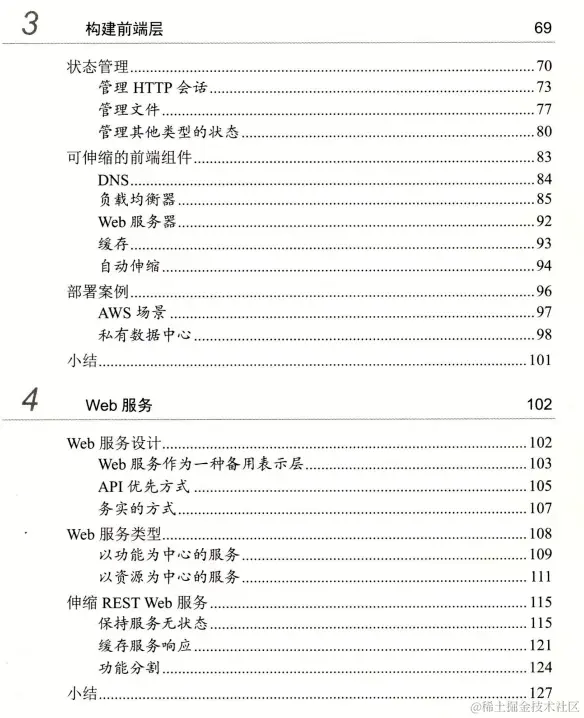 本章内容主要集中在直接与客户端软件(比如Web浏览器及移动APP)交互的那部分基础设施上。本章会深入解释前端管理状态的几种方式,以及构建可伸缩前端的几种重要组件,比如负载均衡、代理、内容分发网络(CDN);之后会探讨自动化伸缩及几种部署场景。