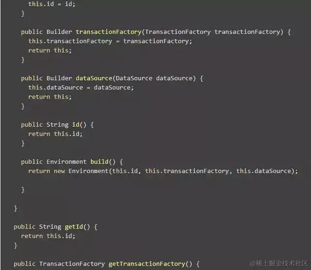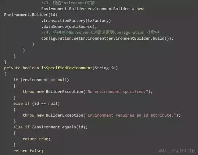 在构建Configuration对象的过程中,XMLConfigParser解析 mybatis XML配置文件节点<environment>节点时,会有以下相应的代码:
