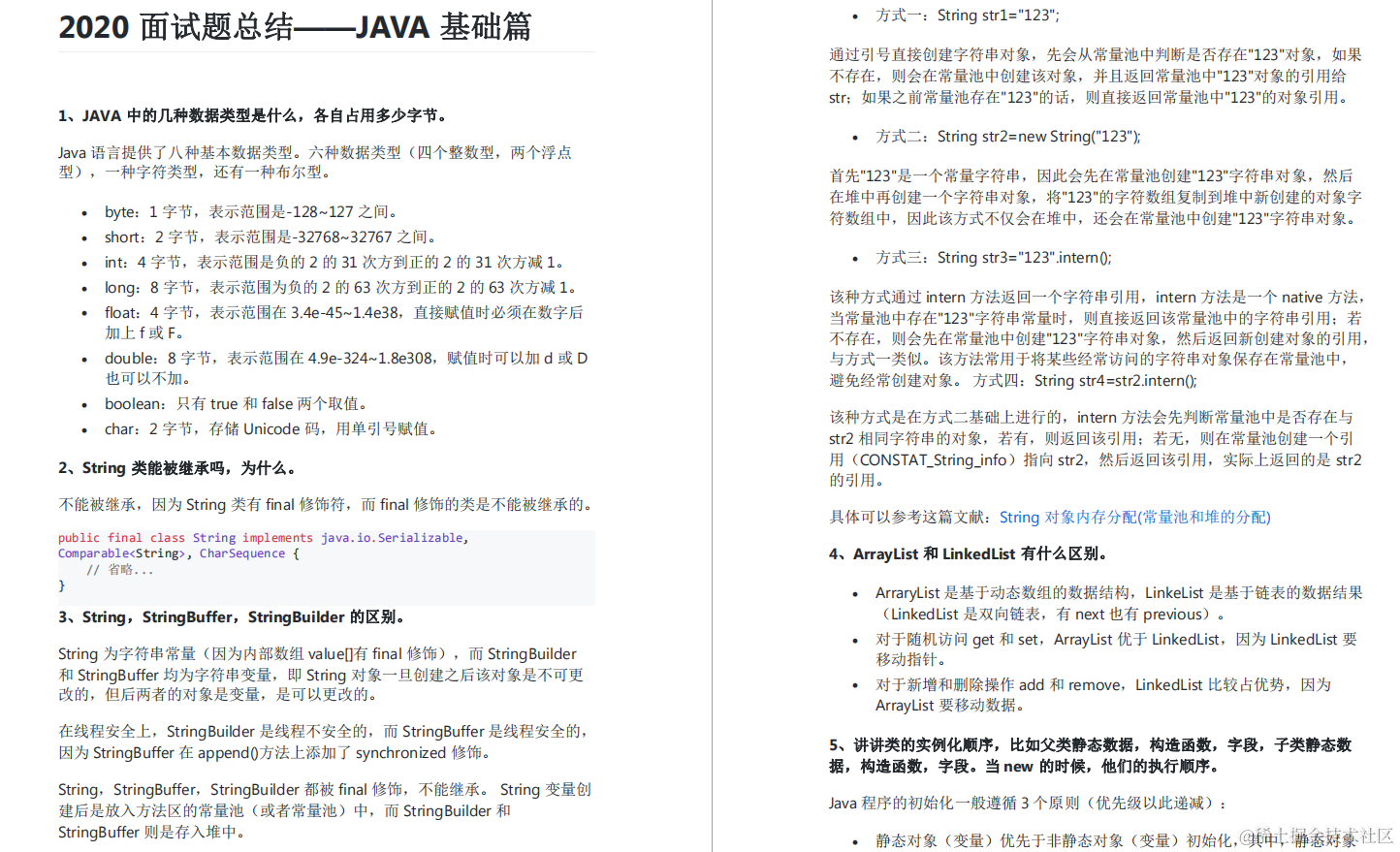 与此同时,今年算法面试一定是会被问的,而算法不是光靠背面试题就有用的,它是需要数学逻辑思维的,因此,小编会在文末为大家准备一份非常优质的算法学习手册,重点在于学习思维方法,话不多说,直接开始上精选的大厂面试真题!