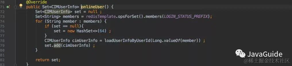 实现也很简单,也就是查询之前保存 ”用户登录状态的那个去重 set“即可。