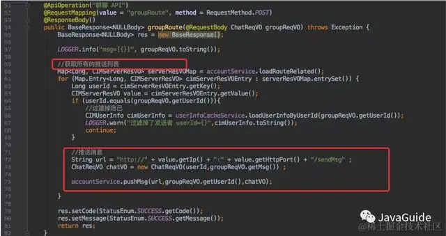 这时会去调用 route 的群聊接口。