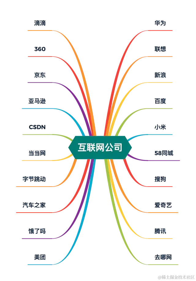 由于文章篇幅内容有限,面试到的公司不可能面面俱到,所以这里选取了6家具有代表性的互联网公司,然后对这两个梯队的互联网公司的面试进行了详细的分析,用宏观的角度来将这些互联网公司的面试考点进行了汇总。