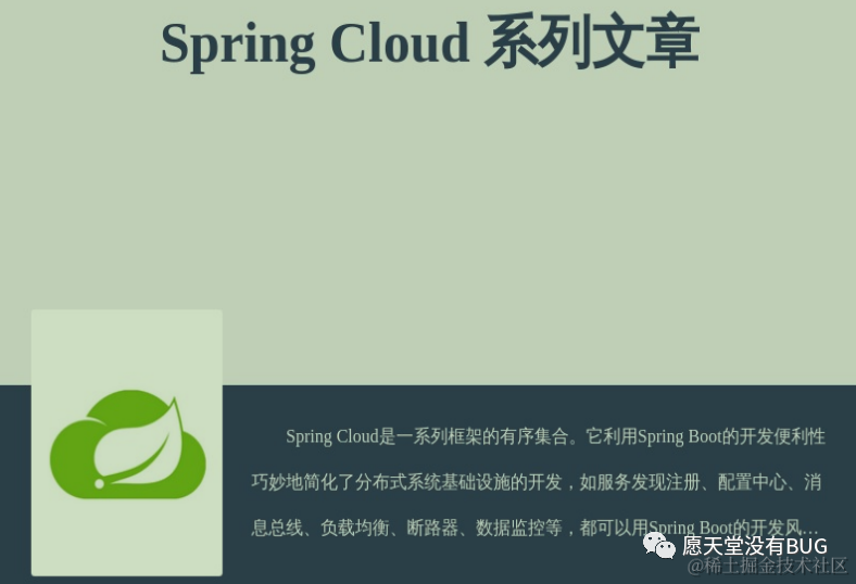 Spring Cloud是系列框架的有序集合。它利用Spring Boot的开发便利性 巧妙地简化了分布式系统基础设施的开发, 如服务发现注册、配置中心、消息总线、负载均衡、断路器、数据监控等,都可以用Spring Boot的开发...