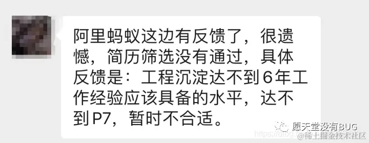 最难过的是下面这位,在简历环节就直接被刷的。个人履历还不错,在腾讯工作多年,转战二线小厂,技术扎实,但蚂蚁金服连面试机会都不给就拒了,给出的答复是“简历不合适”,惹得这位直呼“心生愤怒,倍感羞辱”。