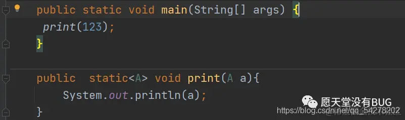 这里有一个自动拆装箱的过程 假如我直接在print方法中直接传入String那么他那个A会自动的变成string类型