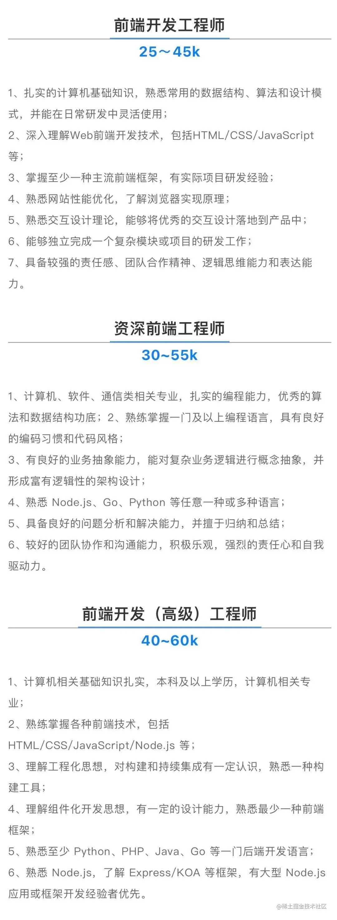 字节的前端一直是大热之选,薪资和技术都是国内的最前沿。下面为大家简单介绍一下字节技术岗的职级体系和相应的技术要求。并给大家分享一套由字节3-1前端面试官整理的高频核心面试题100道,祝大家求职顺利!