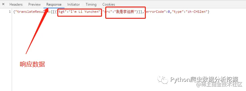 在Response响应数据包里translateResult可以看到响应的内容