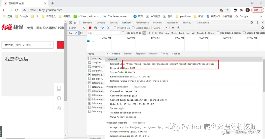在FormData里面是发送到请求链接的表单,比如参数i是待翻译的内容