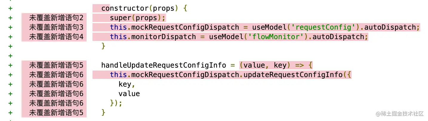 // 前端项目中一个语句可能包括多行,这里让报告更清晰,将新增语句中的每行都标记上