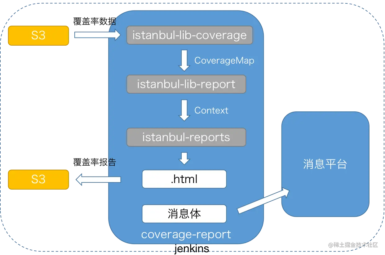 istanbul-lib-coverage、istanbul-lib-report、istanbul-reporters等工具包生成报告,由 Jenkins 通过脚本调用。 -