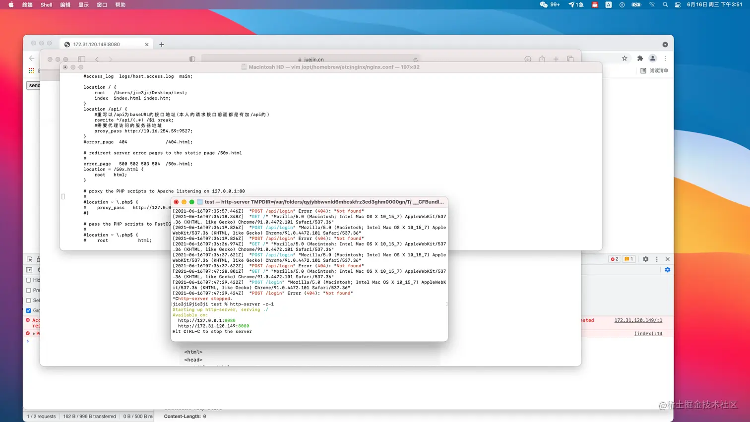 然后我们配置一下代理,这个意思就是我们请求中有 /api 这样的就会代理到 http://127.0.0.1:8080,所以我们只要访问 /api/login 这个不跨域的接口,然后就会由服务器反向代理到 http://10.16.254.95[/login。](link.zhihu.com/?target=htt…)