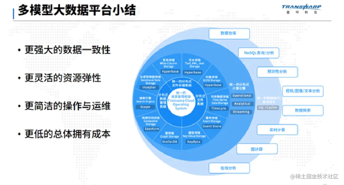 与之相比,原生的多模型大数据平台在以下方面具有天然优势: