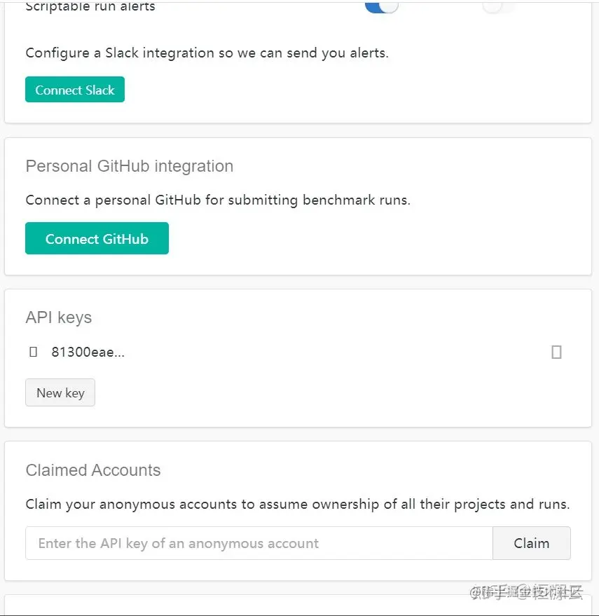 下拉到api keys,如果没有就New key。复制该api key