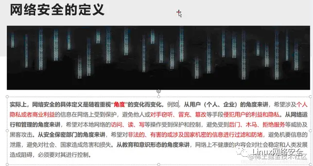 网络安全主要包括局域网和子网安全,数据传输的安全,网络运行安全,网络协议安全。 系统安全 包括操作系统的安全以及数据库系统的安全 应用安全 包括应用软件开发平台安全和应用系统安全 管理安全 网络安全至关重要的往往不是技术手段,而是对人的管理