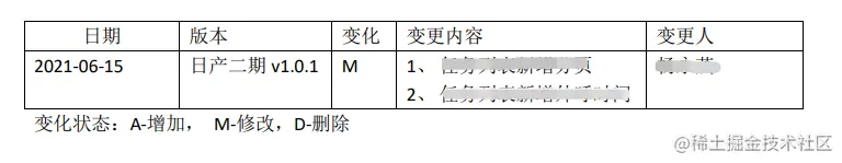 API接口文档 狂躁的大er 2021-06-16 502 阅读1分钟 情景:公司外呼接口对接东风日产,需要一个任务列表接口和推送任务数据两个接口 文档格式:主要分为三个部分 对接文档标题,看一眼就知道这个文档是干嘛的 文档变更记录,主要包括 日期、文档版本、变化、变更内容、变更人,顺带附上变更说明,示例如下 文档接口,也是主要内容;主要包括以下内容 接口名称 请求方式--大写 请求参数 参数名称 类型 (分清对象和对象数组的区别) 备注 请求参数示例代码 响应参数 参数名称 类型 备注 响应参数示例代码