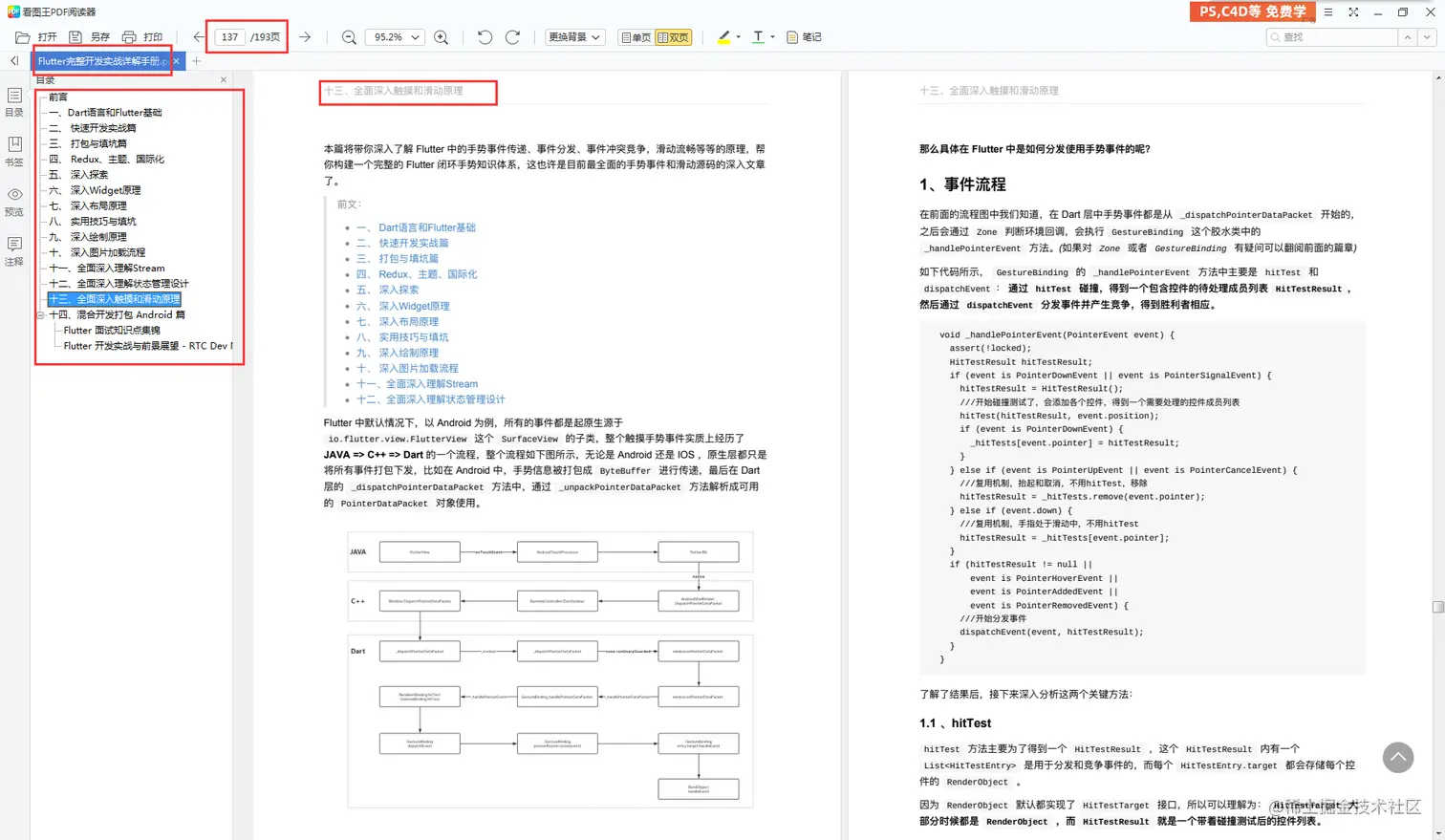 这份手册采用由浅入深的方式介绍Flutter技术原理,分为 14 章,总计 193 页,整理目录如下: