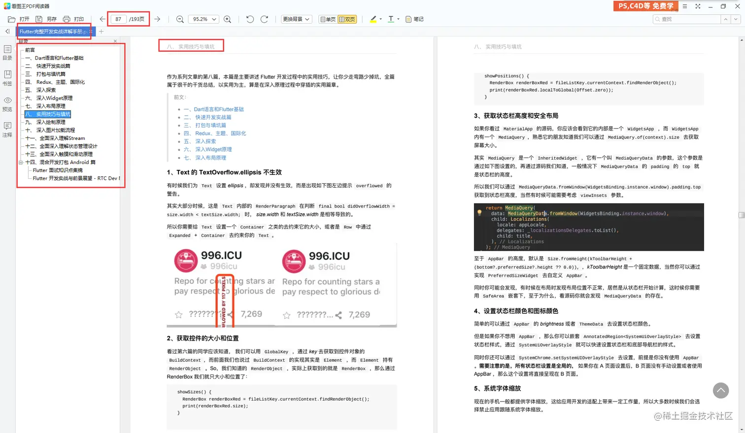 本来计划整理一份能由浅入深、系统介绍Flutter的学习手册。恰好发现有一个大佬整理过这样一份手册,就是这个《Flutter完整开发实战详解手册》。