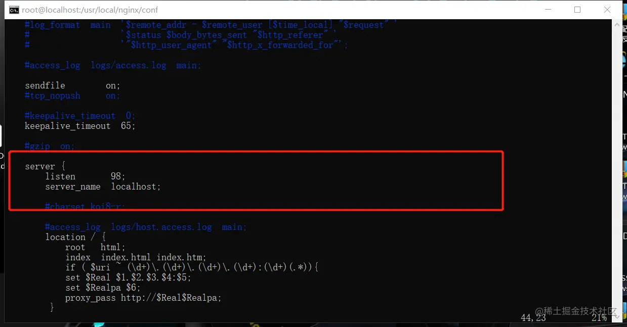 2.在server下可以看到location的参数,我们需要修改location的参数: