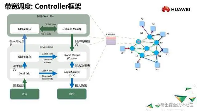 系统从架构设计上会有Global模块和Local模块。Global模块收集的信息可以尽量多,求解的速度可以慢一些没关系,但因为是全局视野,所以最后得到的solution里从全局来看是比较优的。随后,把全局最鲁棒的信息,放进Local模块再做详细的调度。举个例子,Global的环节可能选择了五个站点,比如上海地区接入5个CDN,这五个站点是成本和体验上的最优。在Local环节做实时调节权重,这样能够弥补全局环节预测的不准确性。