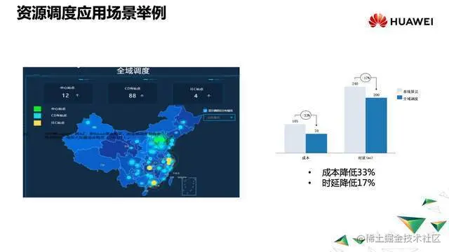 上图是从分布式云概念中截取的,分布式云里面涉及的资源有多种,包括华为云核心区,中心Region资源,包括热点区域智能边缘IEC资源,客户机房布置的IES资源等。调度本质问题变成了如何使得供给侧和消费侧尽量的达到最优平衡。这就需要做很好的用户画像,同时要对客户整个计算资源、带宽资源进行提前的规划和预测。