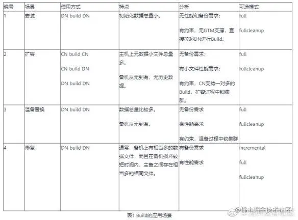 备机重建按照功能场景不同分为:DN Build DN、CN build CN、CN Build DN。各 Build 的应用场景的特点如下: