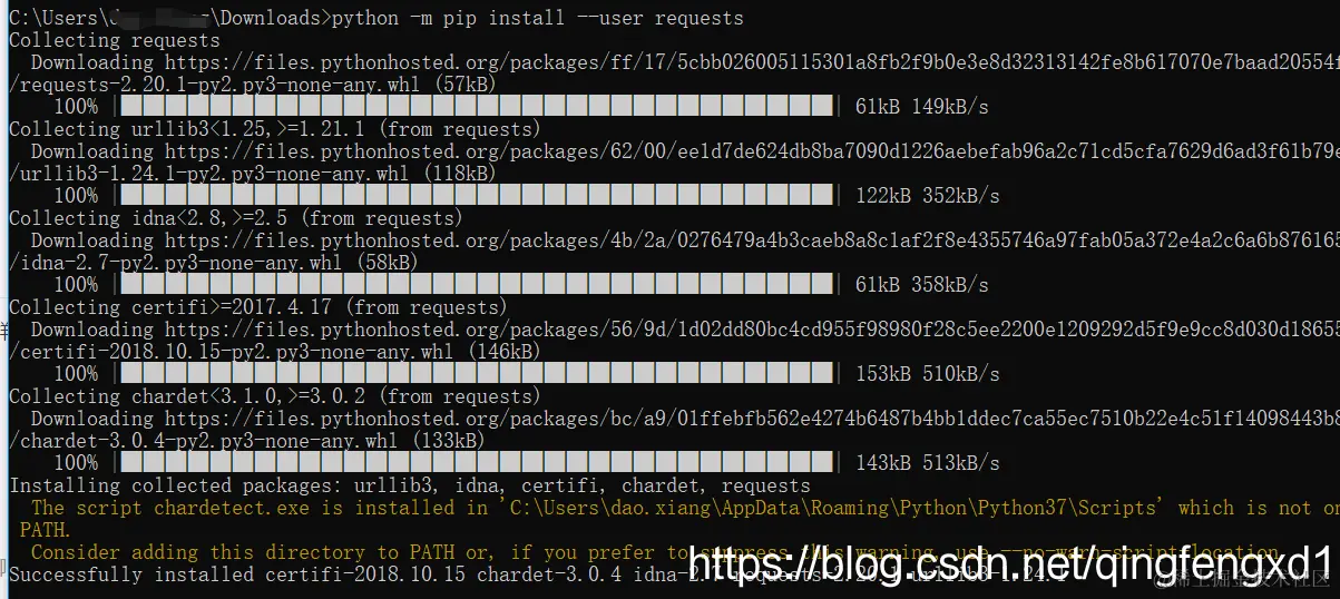 python -m pip install --user requests