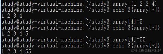 在Shell中,用括号来表示数组,数组元素之间用“空格”分割开。array_name=(value1 ... valuen)